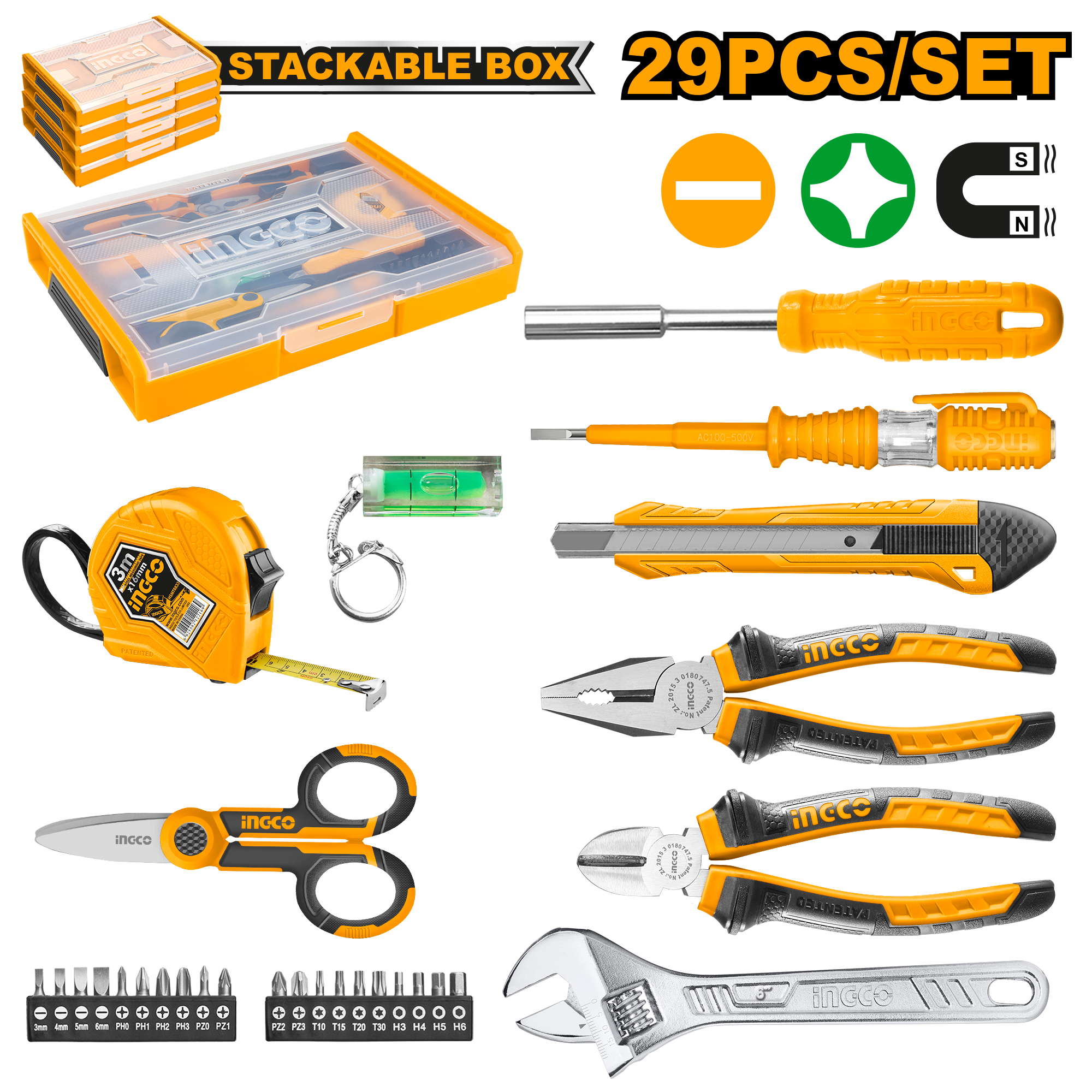 INGCO TOOL/S TELECOM INCL STACABLE BOX 7PC